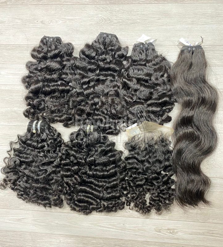 Burmese curly and Natural wavy Double Machine Wefted Bundles